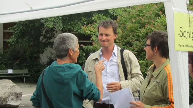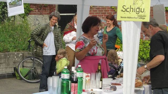 Am 26. Juni veranstaltete der Verein Hühnerhof Schigu am hoffentlich neuen Standort an der Niklausstrasse einen Informationsapéro für Nachbarschaft und Presse. Den Wein spendete Bar’oc-René in Bülach, den Hornkäse schenkte unsere Quästorin Jolanda Schärer. Artikel erschienen im Tagesanzeiger und im Zürich Nord.