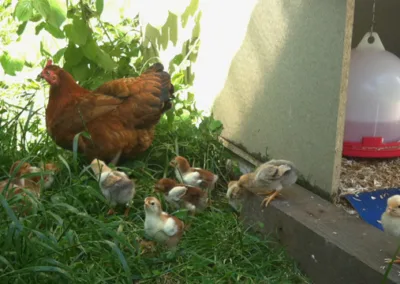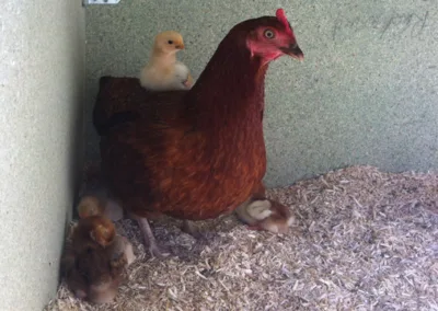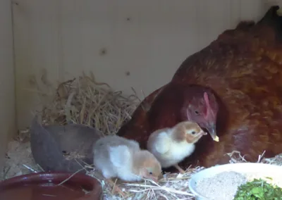 Bruteiern vom Jurasüdfuss und aus dem Grossen Moos mit Schlupftermin am 27. Mai 2015. Zur Hälfte Naturbrut, zur Hälfte Kunstbrut. Zwölf gesunde Küken starten ihr Leben unter Aufsicht einer engagierten Glucke in unserem Hühnerhof.